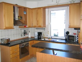 ist vollwertig mit Ceran-Kochfeld, Backofen, 2 x Mikrowelle, Toaster, Kaffeemaschine, 2 x Wasserkocher, und zwei Kühlschränke ausgestattet.